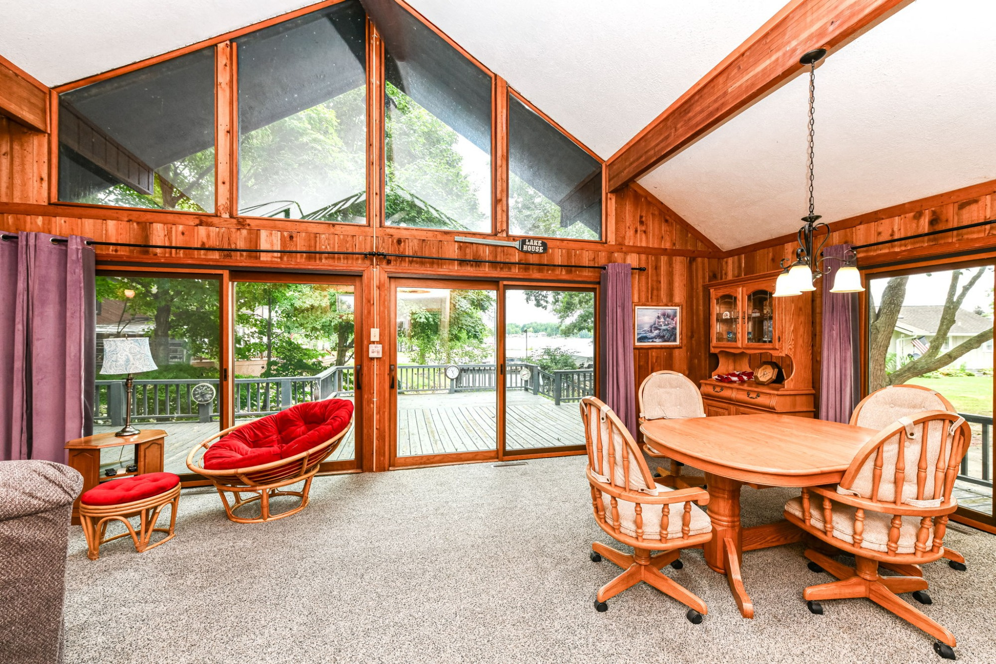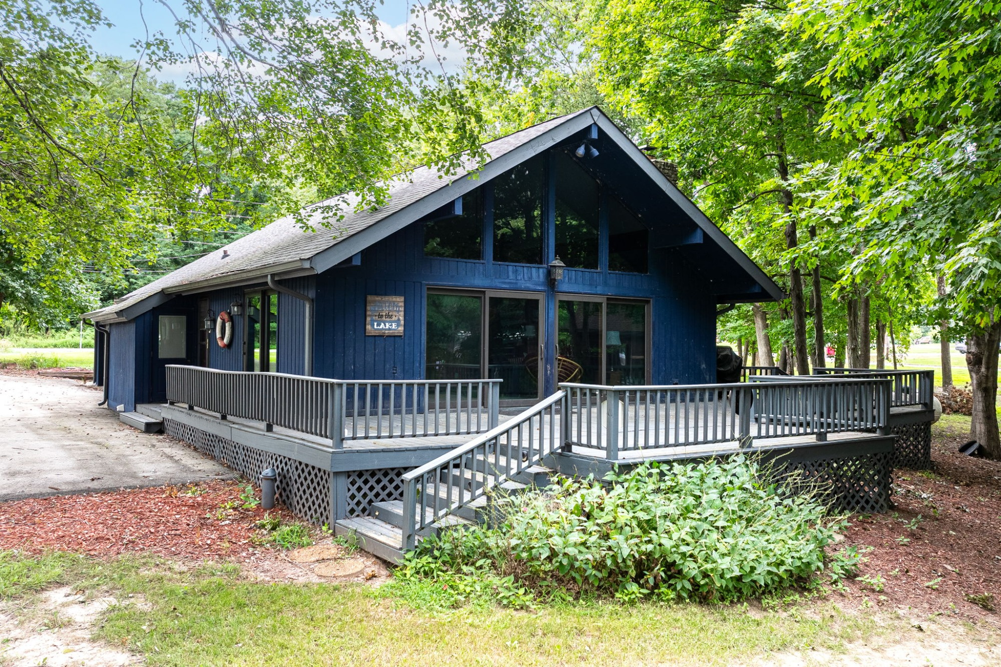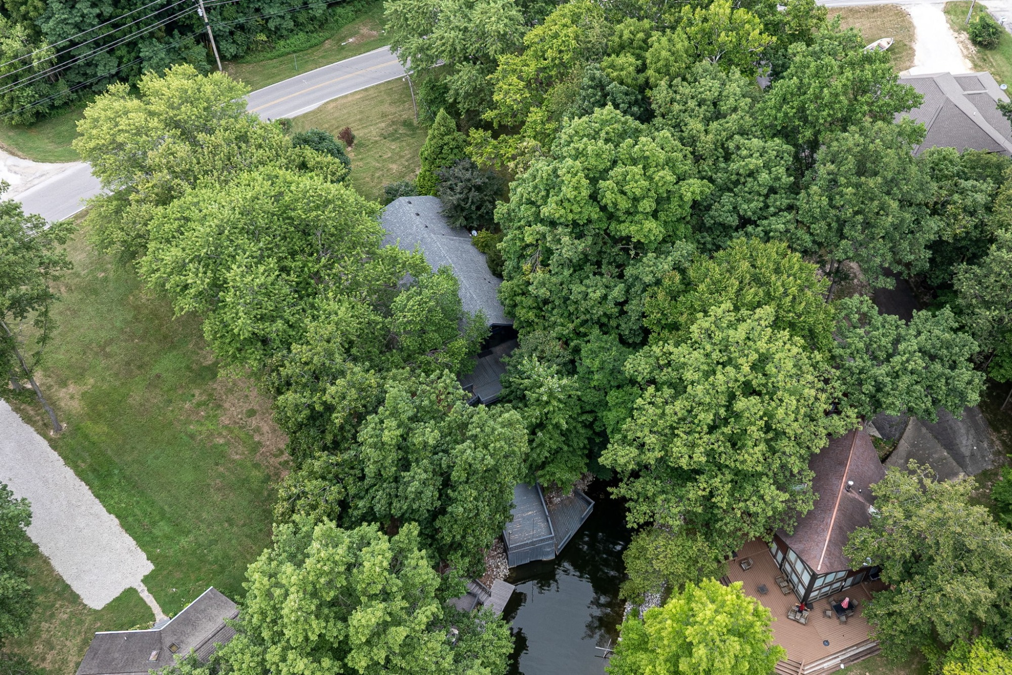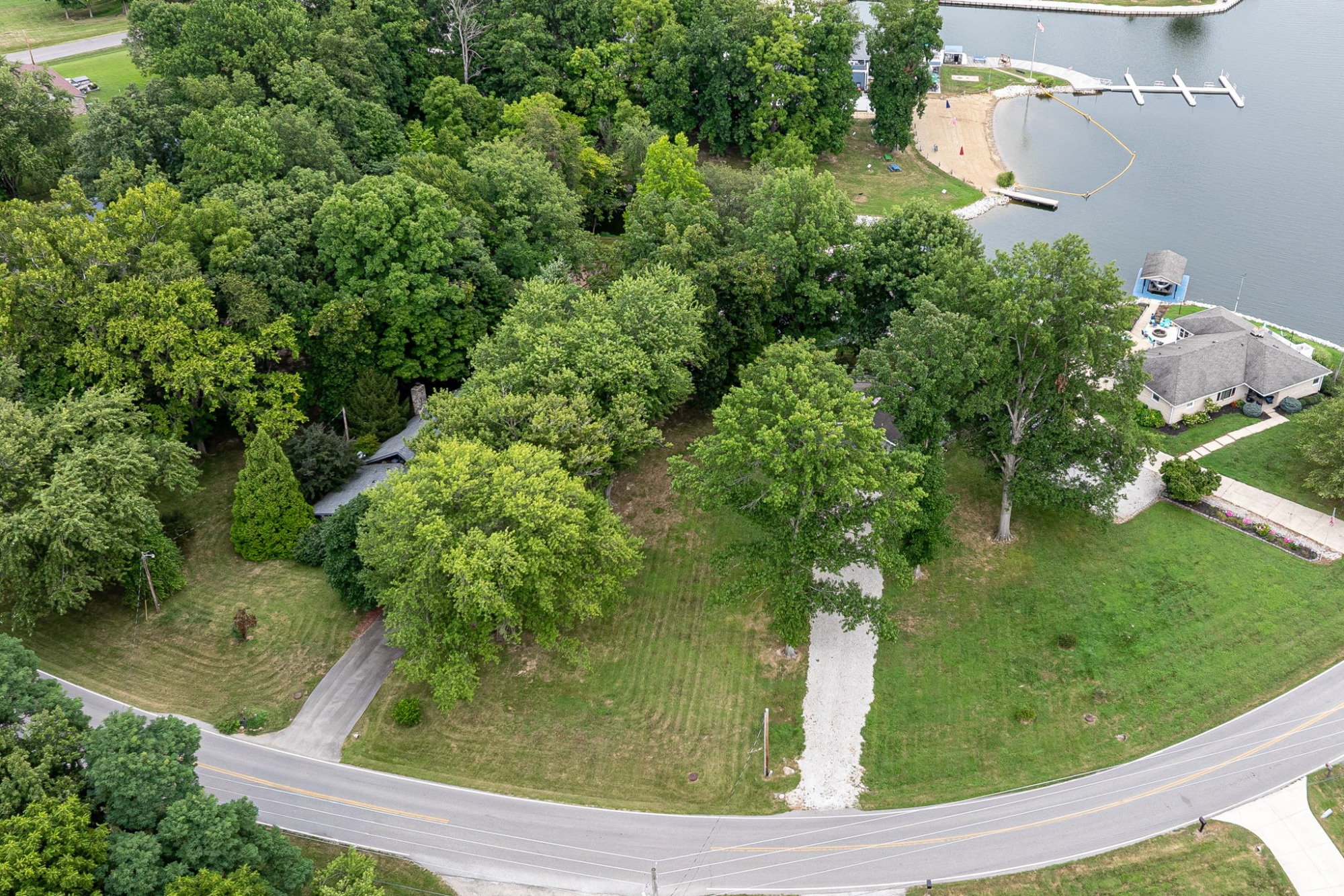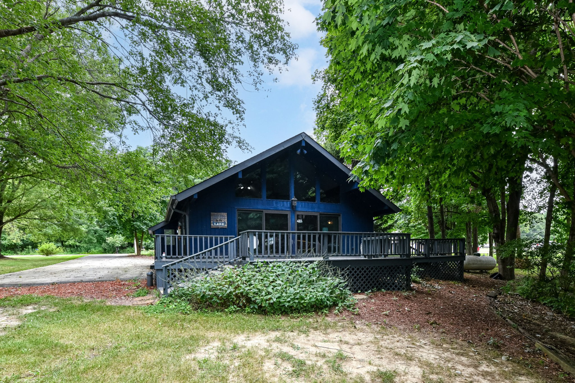 Endless opportunities await with this A-frame lakehome at Heritage Lake! Featuring 2 bedrooms plus a loft for extra living space, this home boasts soaring ceilings and a spacious wrap-around deck where you can take in sweeping views of the main body of the lake. The great room, anchored by a beautiful masonry fireplace, is the perfect spot to enjoy a cozy fire on cold winter nights and flows seamlessly into the small kitchen and wet bar area-ideal for entertaining while still enjoying the lake views. The primary suite includes a charming nook that's perfect for a home office or reading corner. Situated on a combined .58 acres with 70 feet of lakefront, this property offers plenty of space to spread out and enjoy lake life. The oversized 2-car garage provides ample room for vehicles, a generous workshop area, and storage for your golf cart-a must in this fun golf cart-friendly community. Even more unique, the property features a grandfathered-in boat garage topped with a spacious observation deck-perfect for entertaining, relaxing, or soaking in sunsets over the water. With the adjoining lot included, you'll have endless potential to remodel, expand, or even design a brand-new lake retreat. Being sold as-is, this home is an incredible value for buyers ready to create their dream getaway at Heritage Lake.