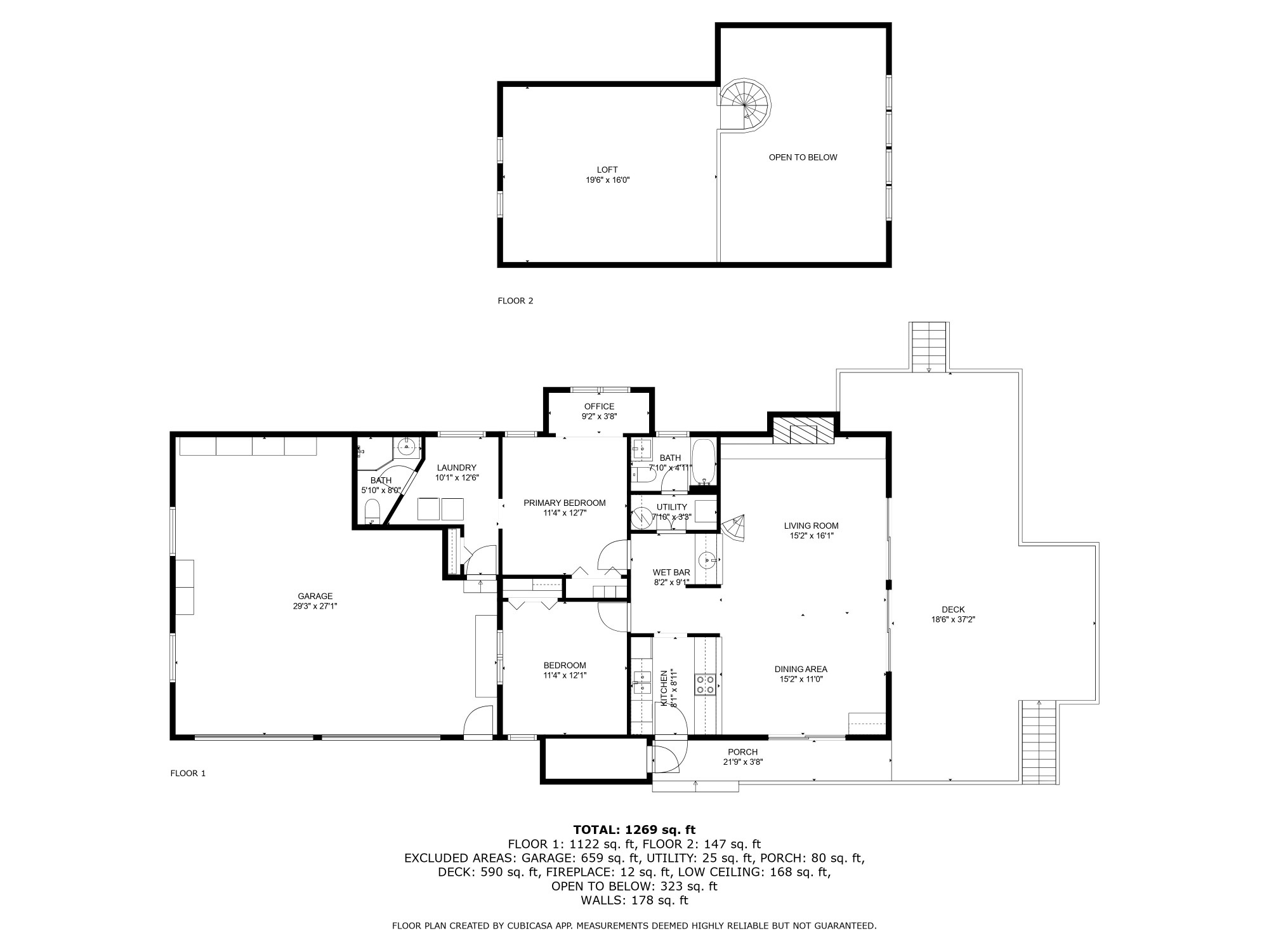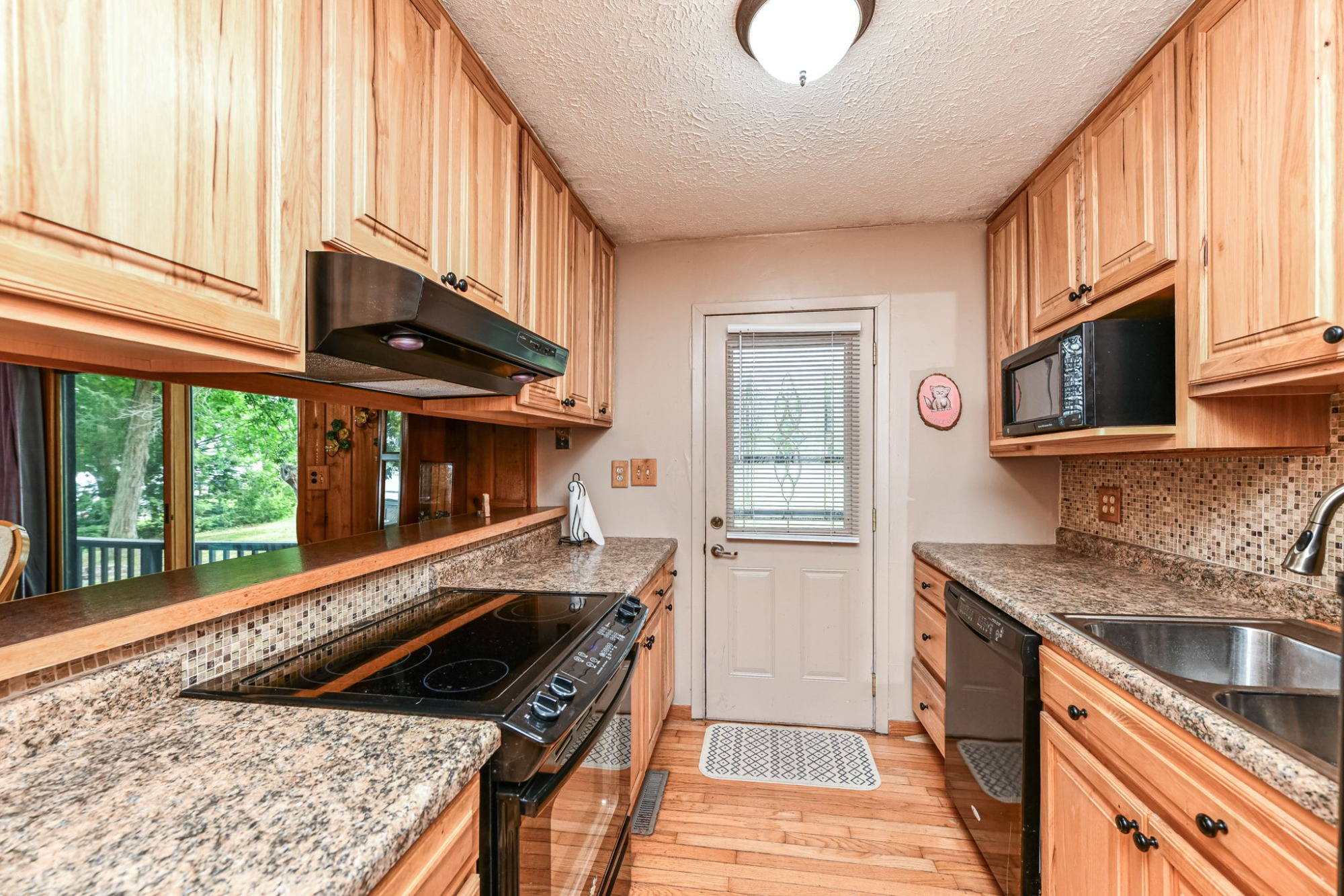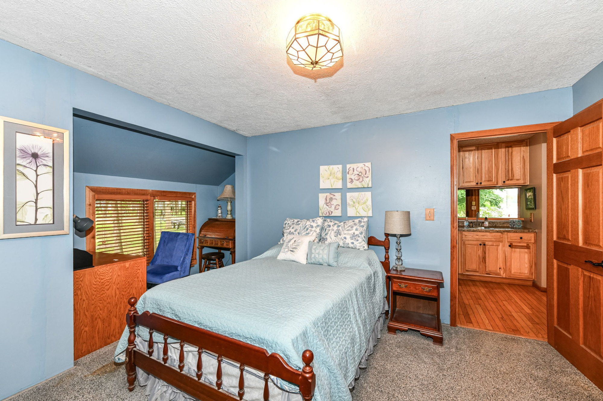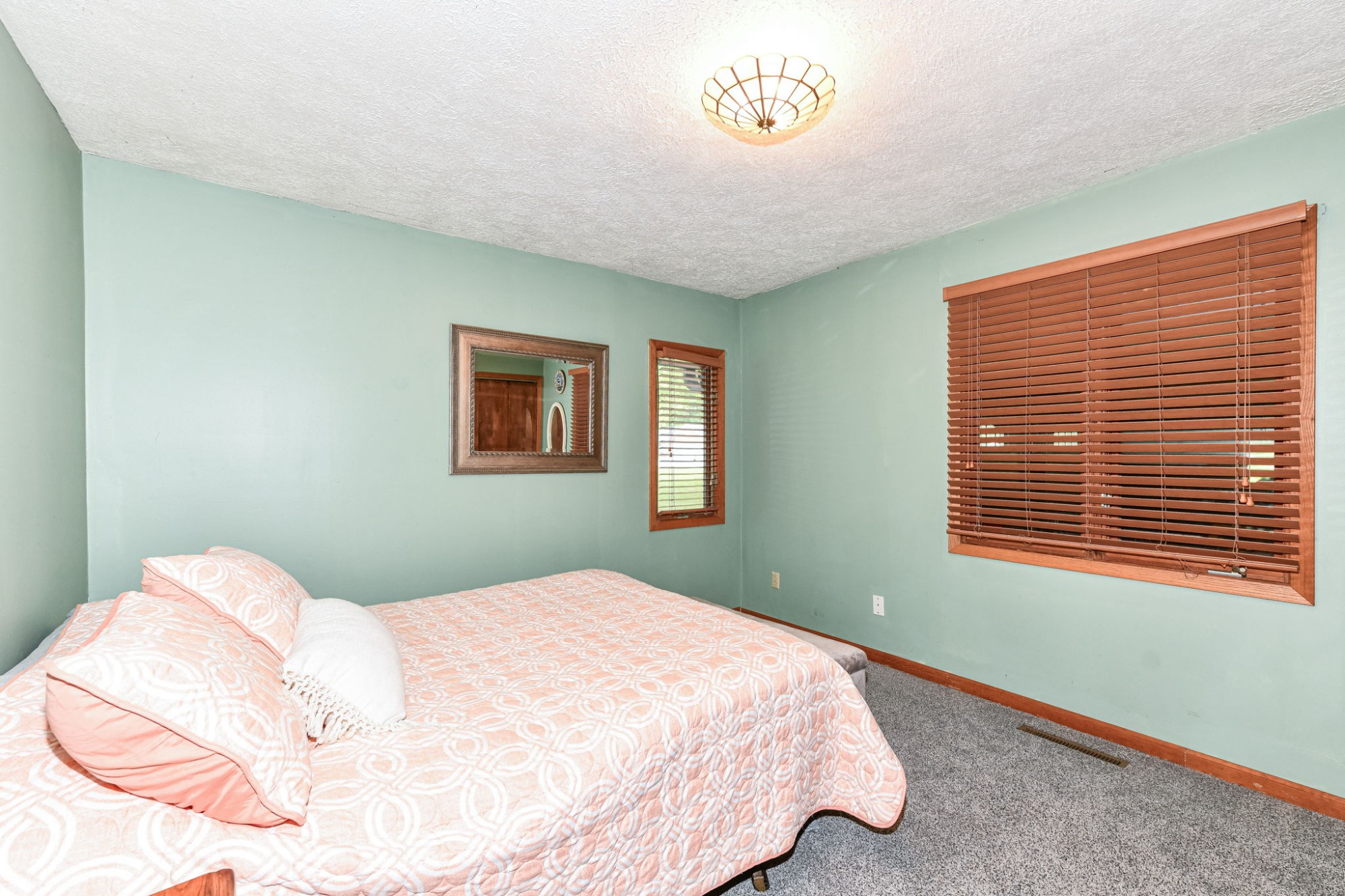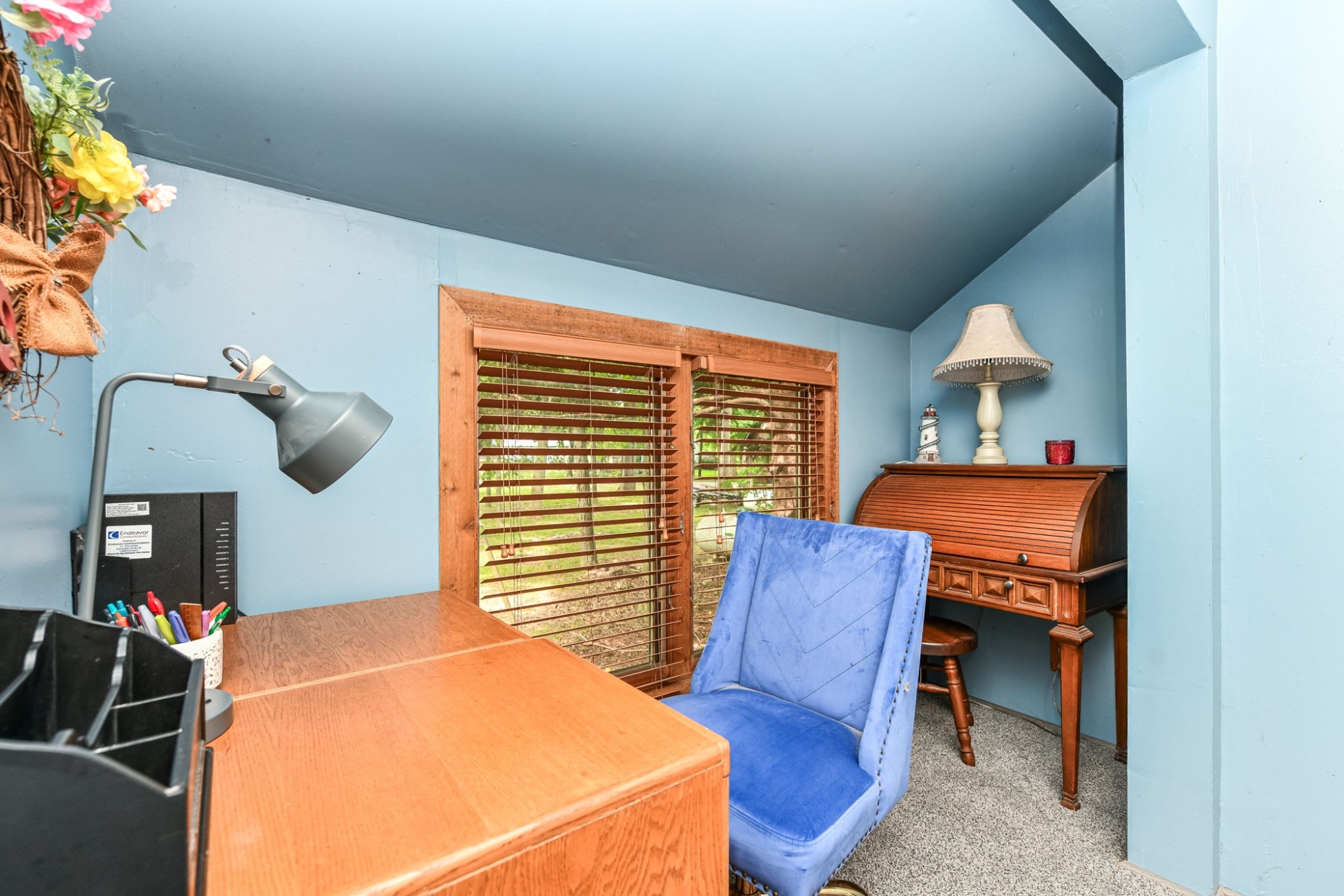 Endless opportunities await with this A-frame lakehome at Heritage Lake! Featuring 2 bedrooms plus a loft for extra living space, this home boasts soaring ceilings and a spacious wrap-around deck where you can take in sweeping views of the main body of the lake. The great room, anchored by a beautiful masonry fireplace, is the perfect spot to enjoy a cozy fire on cold winter nights and flows seamlessly into the small kitchen and wet bar area-ideal for entertaining while still enjoying the lake views. The primary suite includes a charming nook that's perfect for a home office or reading corner. Situated on a combined .58 acres with 70 feet of lakefront, this property offers plenty of space to spread out and enjoy lake life. The oversized 2-car garage provides ample room for vehicles, a generous workshop area, and storage for your golf cart-a must in this fun golf cart-friendly community. Even more unique, the property features a grandfathered-in boat garage topped with a spacious observation deck-perfect for entertaining, relaxing, or soaking in sunsets over the water. With the adjoining lot included, you'll have endless potential to remodel, expand, or even design a brand-new lake retreat. Being sold as-is, this home is an incredible value for buyers ready to create their dream getaway at Heritage Lake.